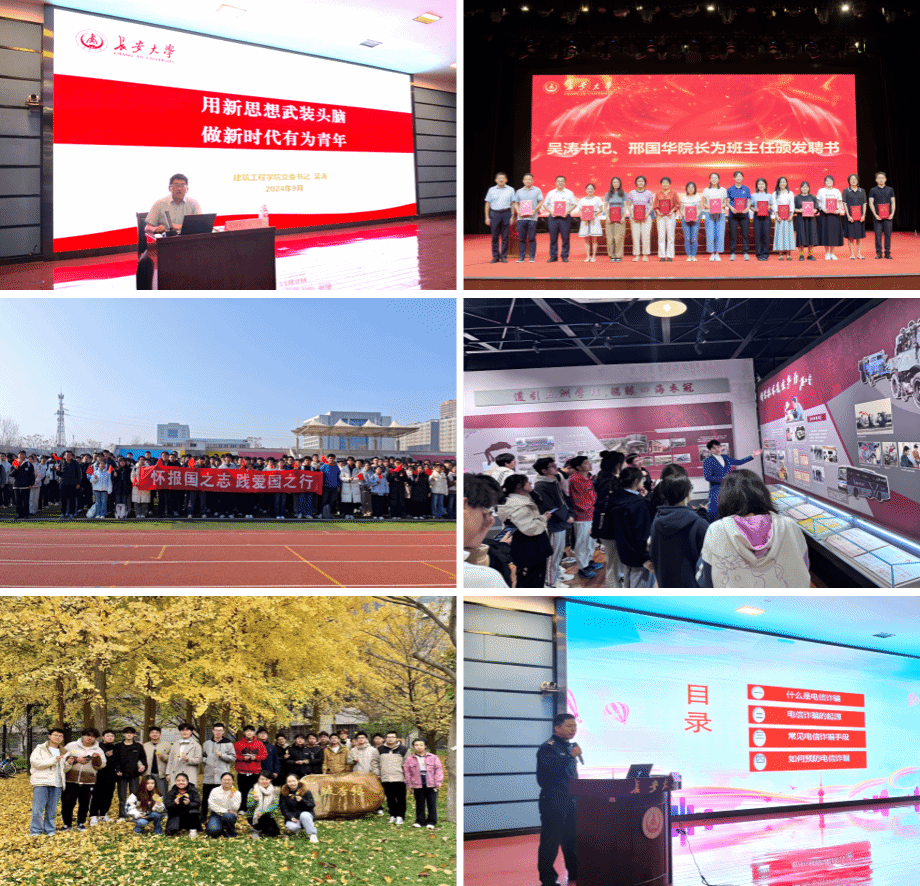 聚焦理想信念教育,汇聚“全员育人”主体链。学院强化思政引领,搭建“学院领导-专任教师-班主任-辅导员”全员育人“大思政”平台。学院党委书记吴涛为2024级新生讲授“用新思想武装头脑,做新时代有为青年”专题讲座暨新生第一课,引导新生筑牢理想信念之基;学院选聘党委书记吴涛、院长邢国华等32名专任教师担任本科生班主任,充分发挥专业优势,在专业教育中涵养新生工匠精神和家国情怀;组织新生参观校史馆,在港珠澳大桥、珠峰测量等重大工程中感悟长大力量,激发新生爱国荣校情怀;学院举办党的二十届三中全会精神专题报告会、团务基础知识培训会、新生“入党第一课”主题教育班会、“怀报国之志 践爱国之行”爱国主义教育团日活动等,引导新生坚定理想信念,厚植家国情怀,树立投身“建造强国”事业的远大理想。