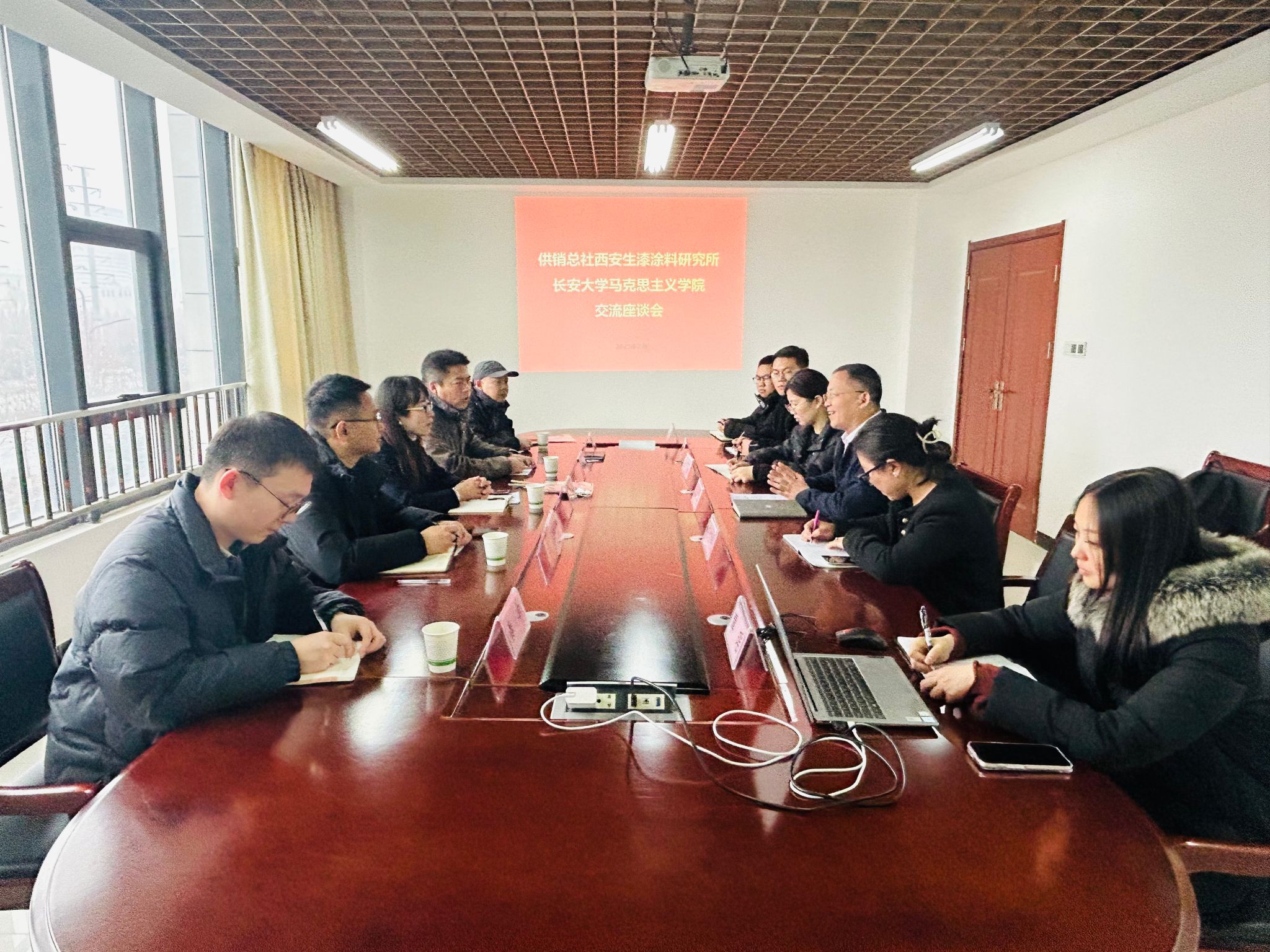 为深入贯彻落实党中央、国务院关于全力做好毕业生就业工作的决策部署,扎实推进教育部“访企拓岗促就业”专项行动要求,进一步挖掘就业资源、拓宽就业渠道,2月21日下午,马克思主义学院党委书记李小芹,副院长万金鹏,院党委副书记、纪委书记冯迪,学院近现代史教研部教师肖守贸,学院学办副主任兼团委书记秦丰一行5人赴中华全国供销合作总社西安生漆涂料研究所走访调研。西安生漆涂料研究所党委书记、所长赵瑞出席调研座谈会。