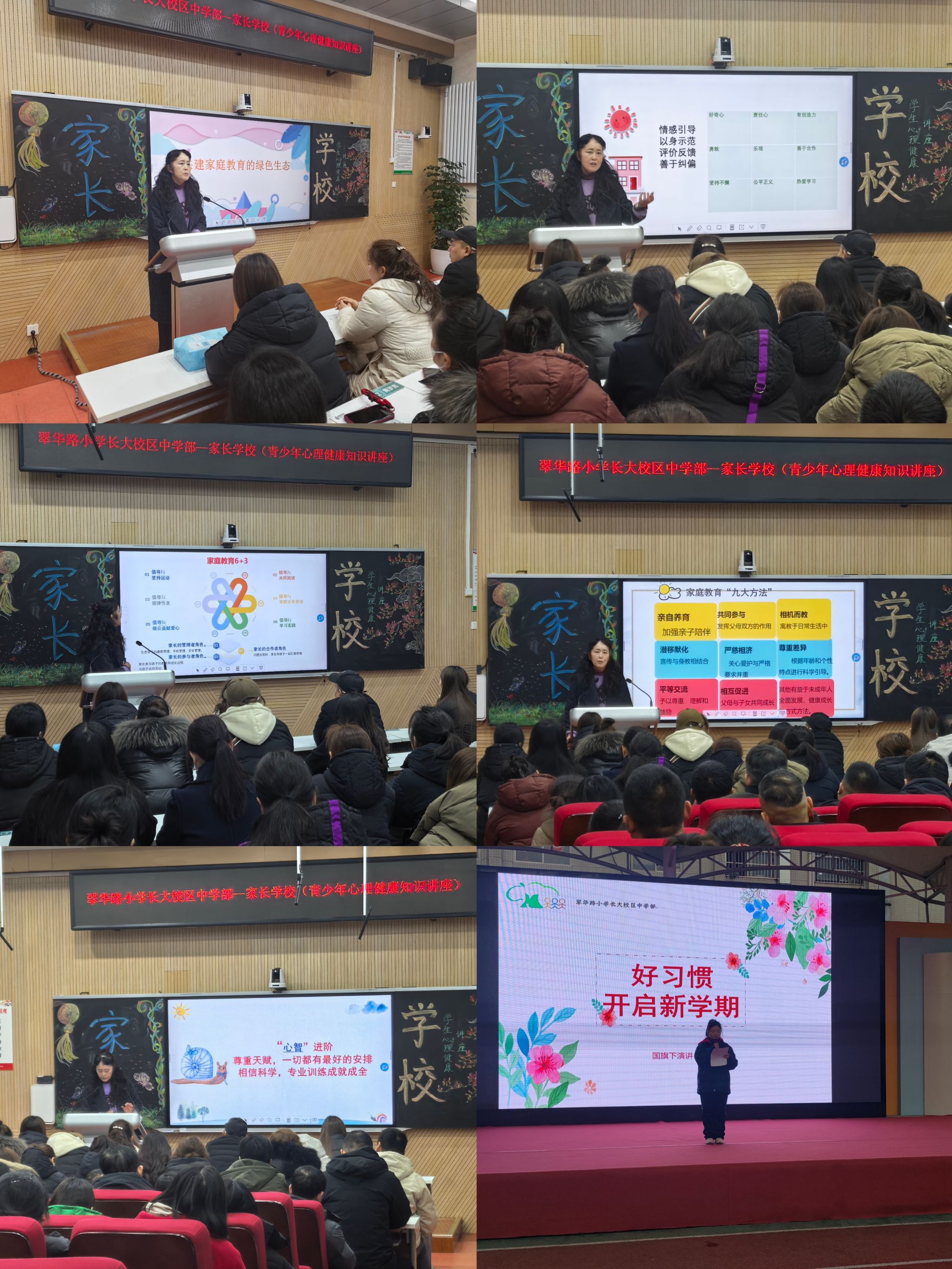 初中举办题为“共建家庭教育的绿色生态”的青少年心理健康知识讲座作为开学第一课,帮助家长更好地理解孩子的内心世界,指导孩子健康成长,促进家校合作。