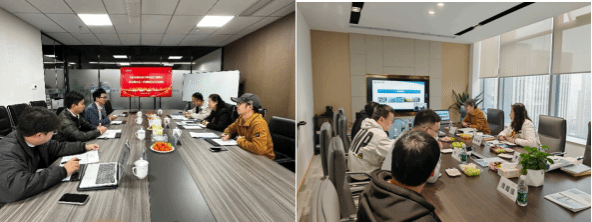 郭咏梅一行与企业相关负责人开展座谈交流,详细介绍了学院的发展历程、办学特色、科研成果及人才培养体系建设情况。她表示,学院始终以服务国家战略和行业需求为导向,致力于培养具有创新能力和实践能力的高素质人才,希望通过此次访企拓岗,精准对接企业用人需求,优化人才培养方案,共建实习实训基地,推动校企合作向更深层次、更广领域迈进。企业相关负责人对学院到访表示热烈欢迎,充分肯定了学院毕业生扎实的专业能力和综合素养,并围绕企业主营业务、发展规划、人才培养机制、招聘需求及未来合作方向展开深入交流,期待与学院在科研攻关、产教融合、实习就业等方面加强合作,共同构建“产学研用”一体化机制。