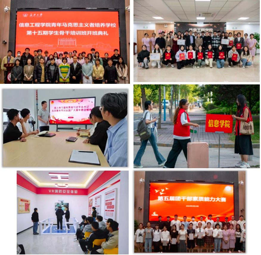 信息工程学院坚持以习近平新时代中国特色社会主义思想为指导,深入贯彻落实习近平总书记关于青年工作的重要思想和关于教育的重要论述,落实学校高质量发展的核心要求,坚持引领力、组织力、服务力和改革力“四向齐驱”,围绕“1个中心、2个阵地、3个工程、4个抓手、5个维度”的工作思路扎实提升共青团工作实效。