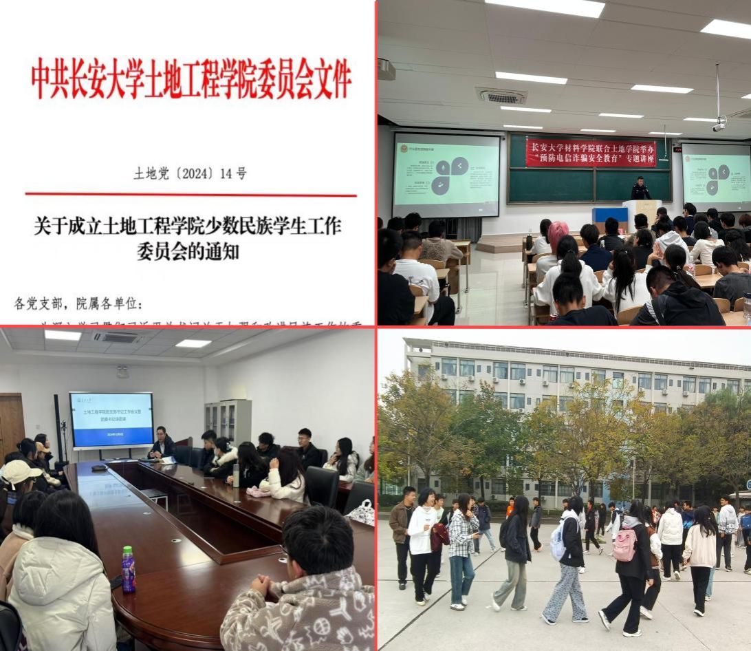 踏梦前行:指引大学之道,践行教育初心。学院制定新生教育工程实施方案,通过班团学生干部座谈会、少数民族学生座谈会等形式精准掌握新生教育需求,助力新生迈出大学生活坚实第一步。精心组织入学教育活动,参观陕西省土地工程建设集团及实验室,让学生在社会实践中感知专业魅力;举办开学典礼,参观学校交通馆、校史馆,参加“学校史校情 担强国使命”主题演讲比赛,增强校情院情认同及“强国有我”的使命感。精心组织学院党政领导、辅导员、班主任等思政力量上好开学第一课、定期走访学生宿舍,指导召开主题班会、主题团日活动累计达40余次;举办迎新家长见面会,积极探索构建“大学生家校共育平台”,贯彻以人民为中心的教育理念,营造了良好的育人氛围。