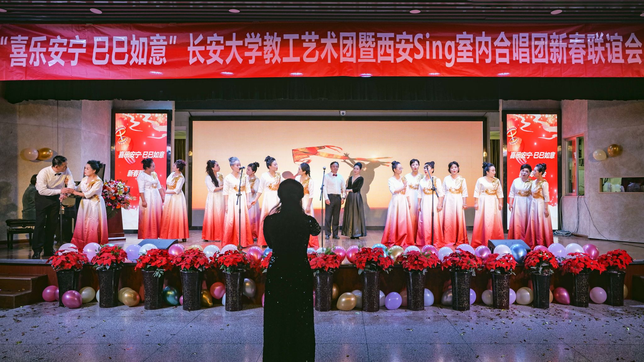 1月8日下午,开云kaiyun官网教工艺术团暨西安Sing室内合唱团新春联谊会活动,在南校区雁博园多功能厅举办。陕西省歌舞剧院女中音歌唱家、国家一级演员杨延红,陕西省合唱协会会长李锐,陕西省乐团女高音歌唱家贾利红,陕西省合唱协会理事贺梅,开云kaiyun官网校工会副主席马艳梅、杨利锋出席活动。