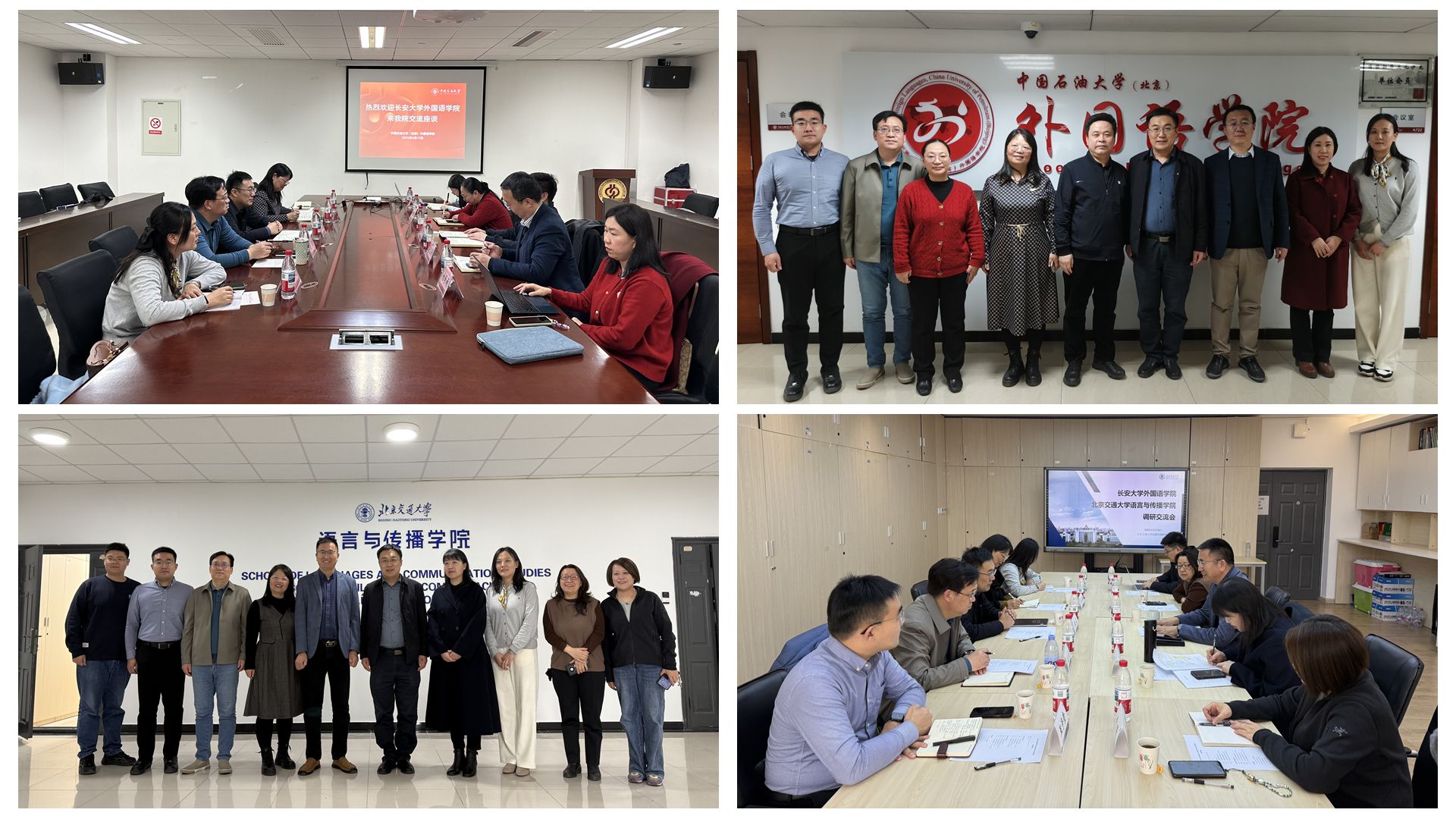 在中国石油大学(北京)外国语学院,双方对各自办学理念、办学特色、历史文化等进行了详细介绍,并围绕党建、公共英语教学改革、学生就业等方面进行了深入研讨。双方表示,将以此次交流为崭新起点,进一步加强沟通协作,不断推动教育质量提升,共同探索人才培养创新模式。中国石油大学(北京)外国语学院党委书记周玉成、党委副书记刘春阳、副院长逯义峰、英语系主任唐萌萌等相关负责人参加座谈会。