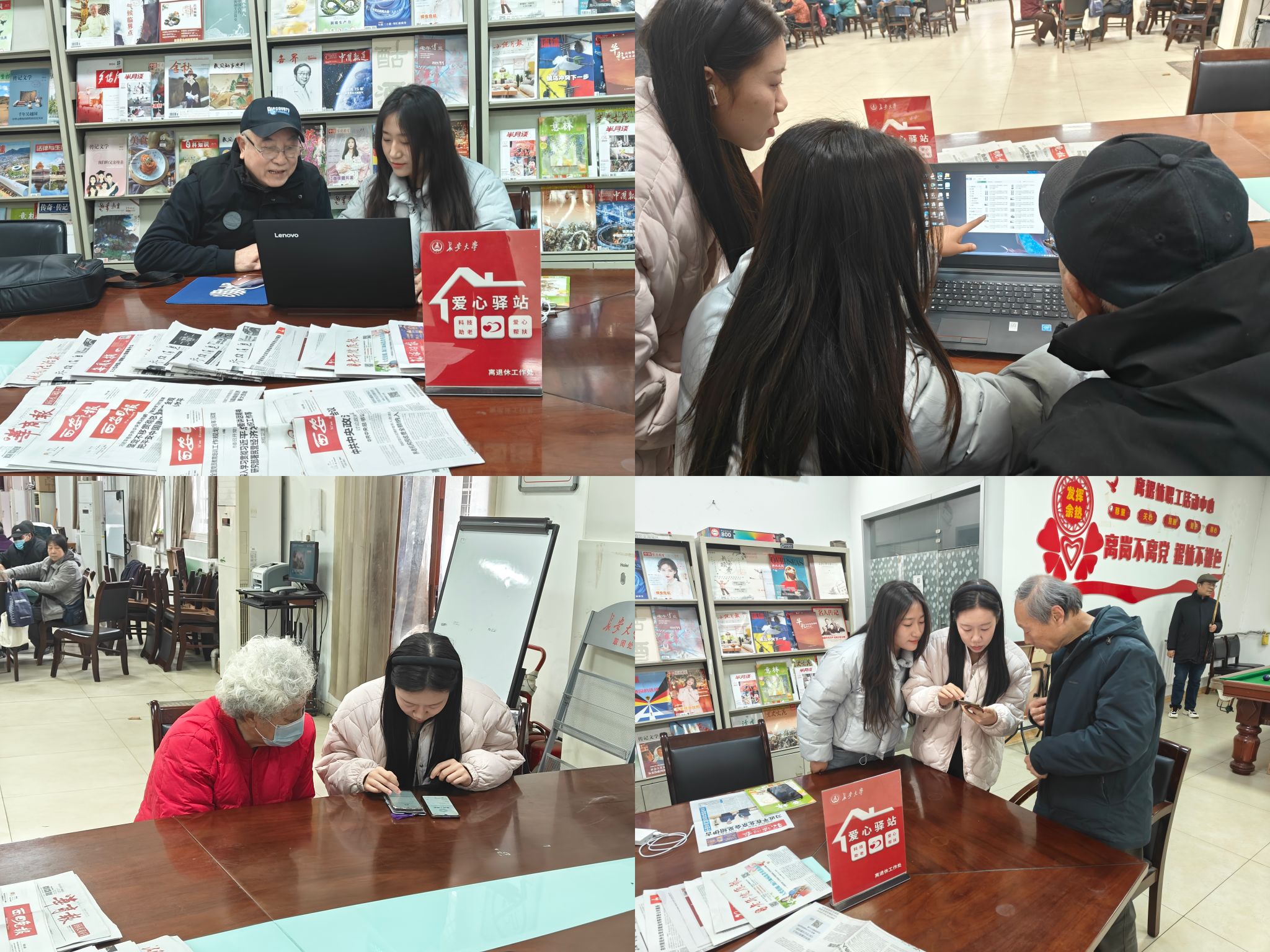 为深入学习贯彻党的二十届三中全会精神、全国两会精神,激励广大青年学子勇担社会责任,传承和践行新时代雷锋精神,3月4日起,离退休工作处联合电控学院、建工学院、机械学院研究生会在长安路住宅区活动室、雁塔校区活动室和崇业路住宅区活动室开展每周一次的“爱心驿站”志愿服务活动,全力助推离退休老教师跨越数字鸿沟,畅享智慧生活。