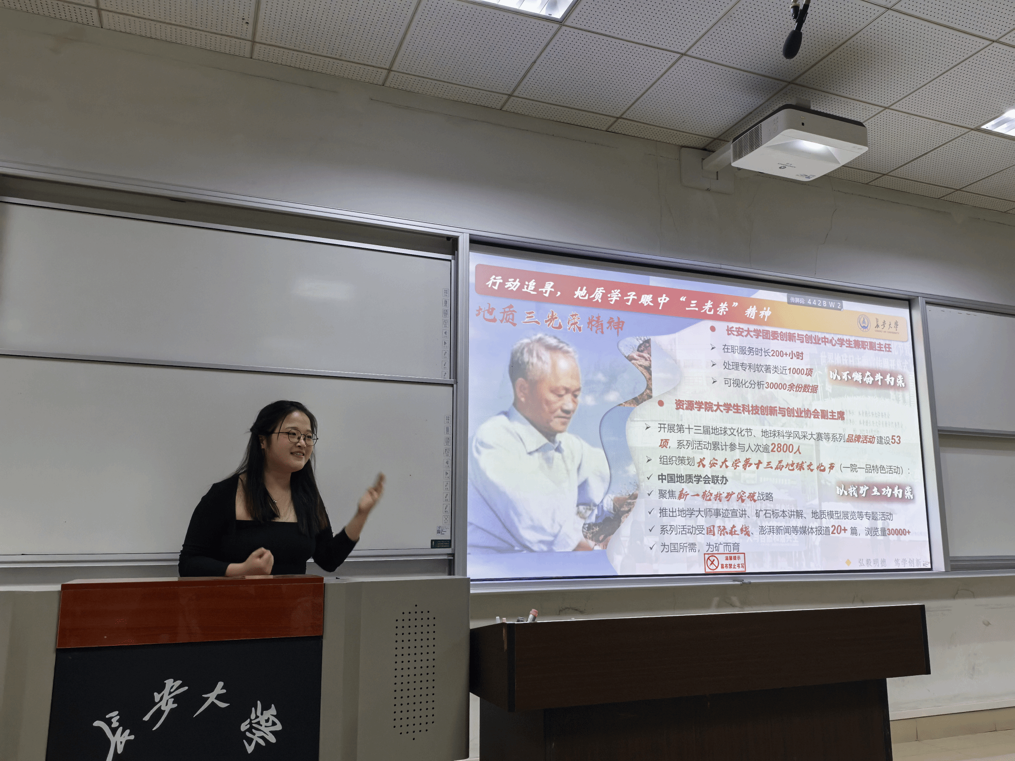 为深入学习宣传贯彻党的二十届三中全会精神和全国教育大会精神,落实新时代立德树人工程,充分发挥朋辈榜样示范引领作用,营造奋发向上的校风学风,帮助广大学生树立科学成才观,激励学生把爱国情、强国志、报国行自觉融入为中国式现代化建设的奋斗中,4月11日,资源学院在北校区WT1101教室举办“爱国奋斗勇担当·榜样引领共成长”长大之星宣讲活动。学院党委副书记许晨、团委副书记樊惠彬出席活动,2024级全体本科生聆听了宣讲。院团委书记巩昌盛主持活动。