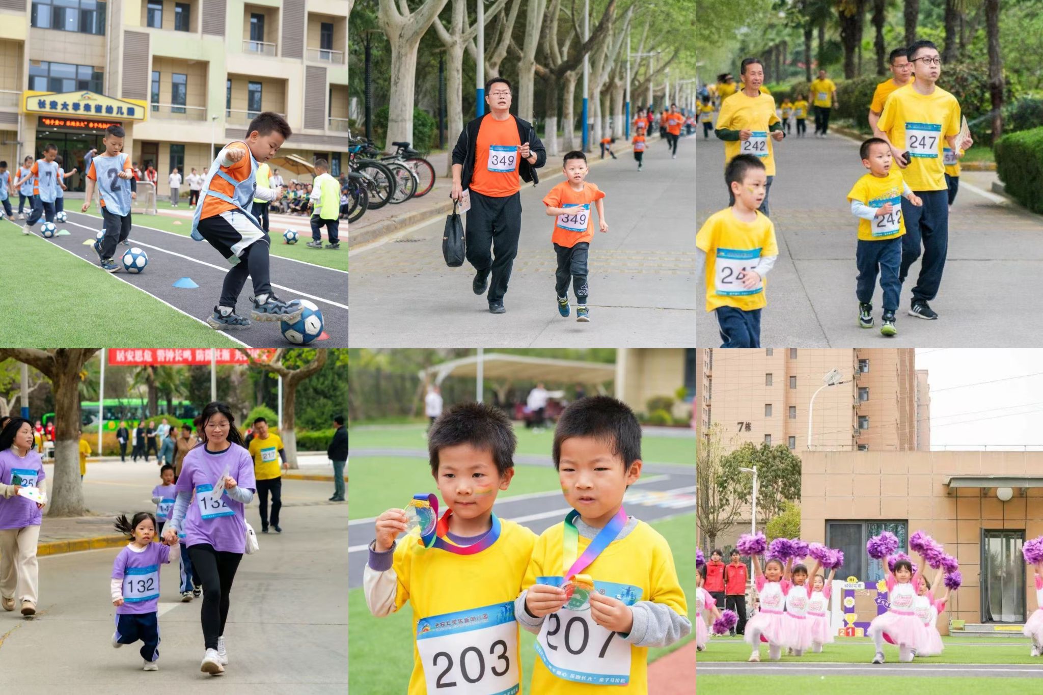 基础教育办公室副主任、附属学校副校长谌亚芳致辞。她强调,亲子马拉松不仅是体能挑战,更是家庭协作的珍贵体验。大班幼儿代表刘泽瑶、张一元以稚嫩童声传递运动精神,号召小伙伴们享受运动快乐。活力四射的啦啦操表演与足球小将的精彩技能展示,生动展现了园所体教融合的教育理念。