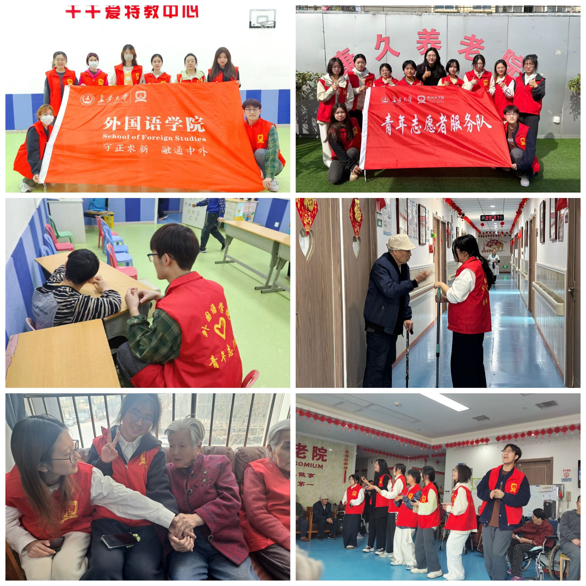 关爱特殊群体,传递温暖力量。3月13日,学院组织8名大学生志愿者赴特教中心,开展第四期“千千爱”关爱心智障碍儿童志愿活动,陪伴心智障碍儿童做游戏、画画、讲故事,用耐心和爱心为孩子们带去温暖与欢乐,帮助他们打开心扉。3月22日,学院组织11名大学生志愿者走进西安市康久养老院,开展第六期“暖春锋行·律动银龄”献温暖志愿活动,志愿者们打扫室内卫生、提供生活帮助、表演文艺节目,丰富老年人的精神文化生活,老人们感受到了浓浓的温暖与关怀。