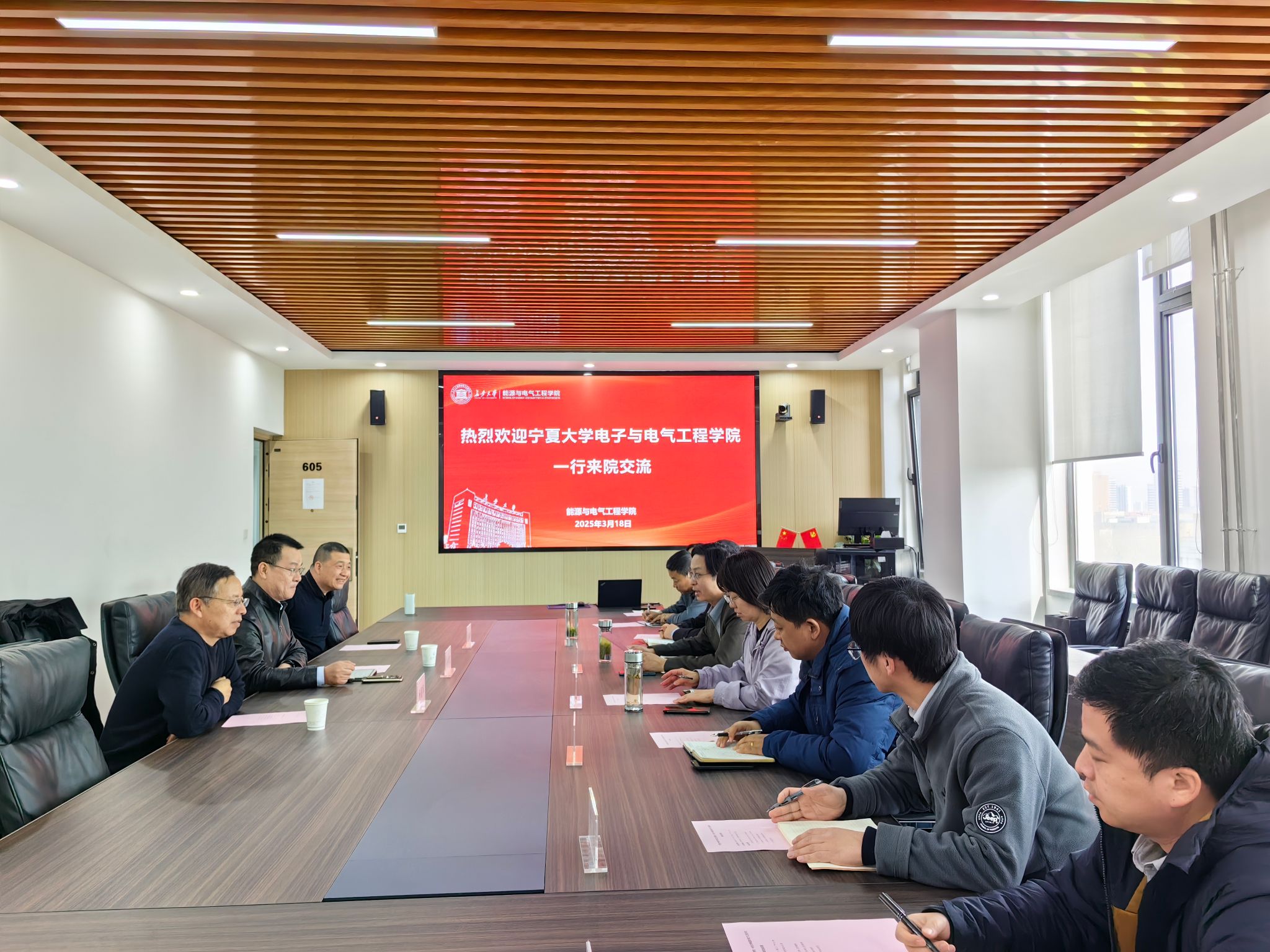 陈昊对宁夏大学电子与电气工程学院来访表示热烈欢迎,介绍了学院专业设置情况、人才培养体系、科研工作情况等,希望双方围绕服务国家“双碳”战略和西部能源转型等方面的共同使命,资源共享、优势互补,共同推动电气工程学科创新发展。