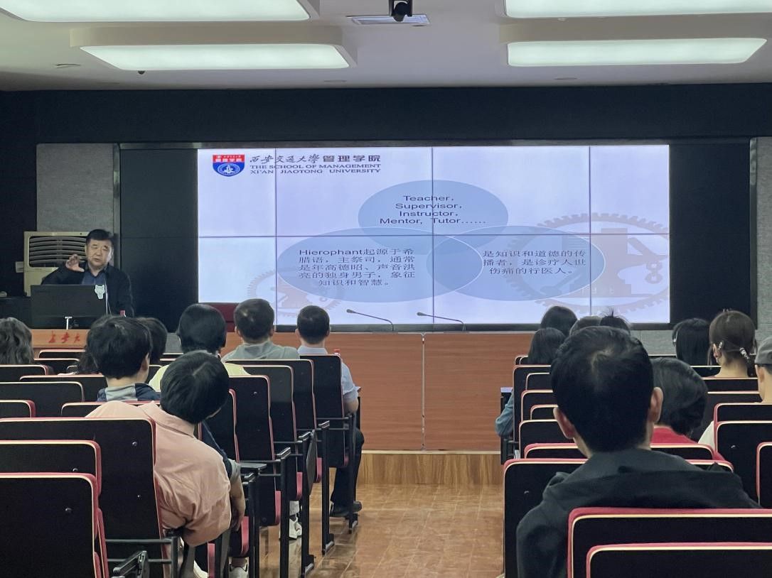为全面落实研究生教育立德树人根本任务,进一步提升导师队伍综合素养,经济与管理学院于5月9日举办2025年度导师培训会,邀请西安交通大学杨建君教授担任主讲。会议由学院副院长杨伟主持,80余名研究生导师参加会议。