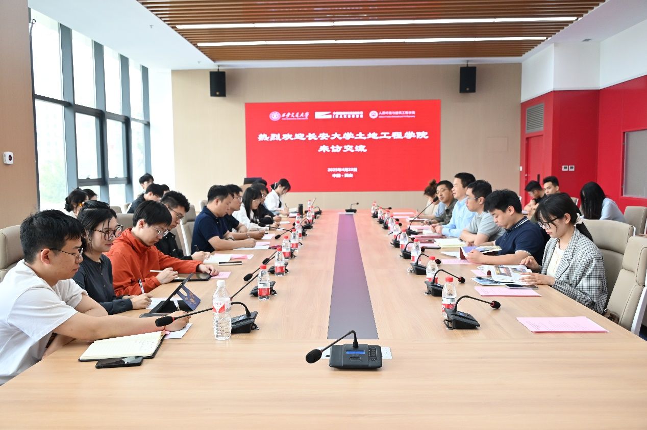 西安交通大学人居环境与建筑工程学院党委副书记王新轲接待学院一行。座谈会上,王新轲介绍人居学院学科建设、人才培养、平台建设、学生工作等情况,希望通过此次活动深化院际合作交流,共谋立德树人创新发展,探讨在生态环境、国土空间治理等领域协同创新与实习就业市场拓展,探索实践资源共享机制。孙翔洲介绍土地工程学院办学特色及服务国家重大战略的使命担当,期待以此次联学研学为契机,以党建引领促进两院交流共建走深走实,探索常态化互鉴互促机制,激励青年学子在服务国家重大战略中建功立业。双方围绕“西迁精神”“两路精神”的弘扬传承、党支部建设及党建引领作用发挥展开经验交流,同时就学生日常教育管理服务、新生军训与入学教育、毕业生就业与职业生涯规划教育、心理健康教育与安全稳定、学科竞赛与创新创业教育、廉洁文化教育与学风建设、党团学组织与校园文化建设、“一站式”学生社区建设、辅导员队伍建设等进行深入调研探讨交流。