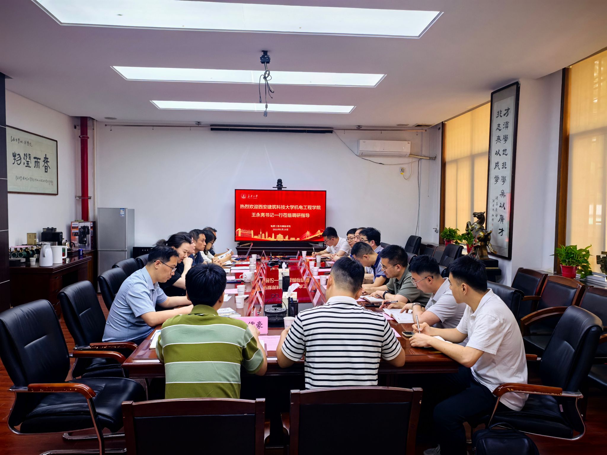5月19日,西安建筑科技大学机电工程学院党委书记王永亮,党委副书记、纪委书记、副院长王凯一行8人来地测学院调研交流。地测学院党委书记王树莹,副书记、副院长、纪委书记欧阳韬,党支部书记代表、学生辅导员等相关工作人员参会。本次座谈会由学院党委副书记潘迎主持。