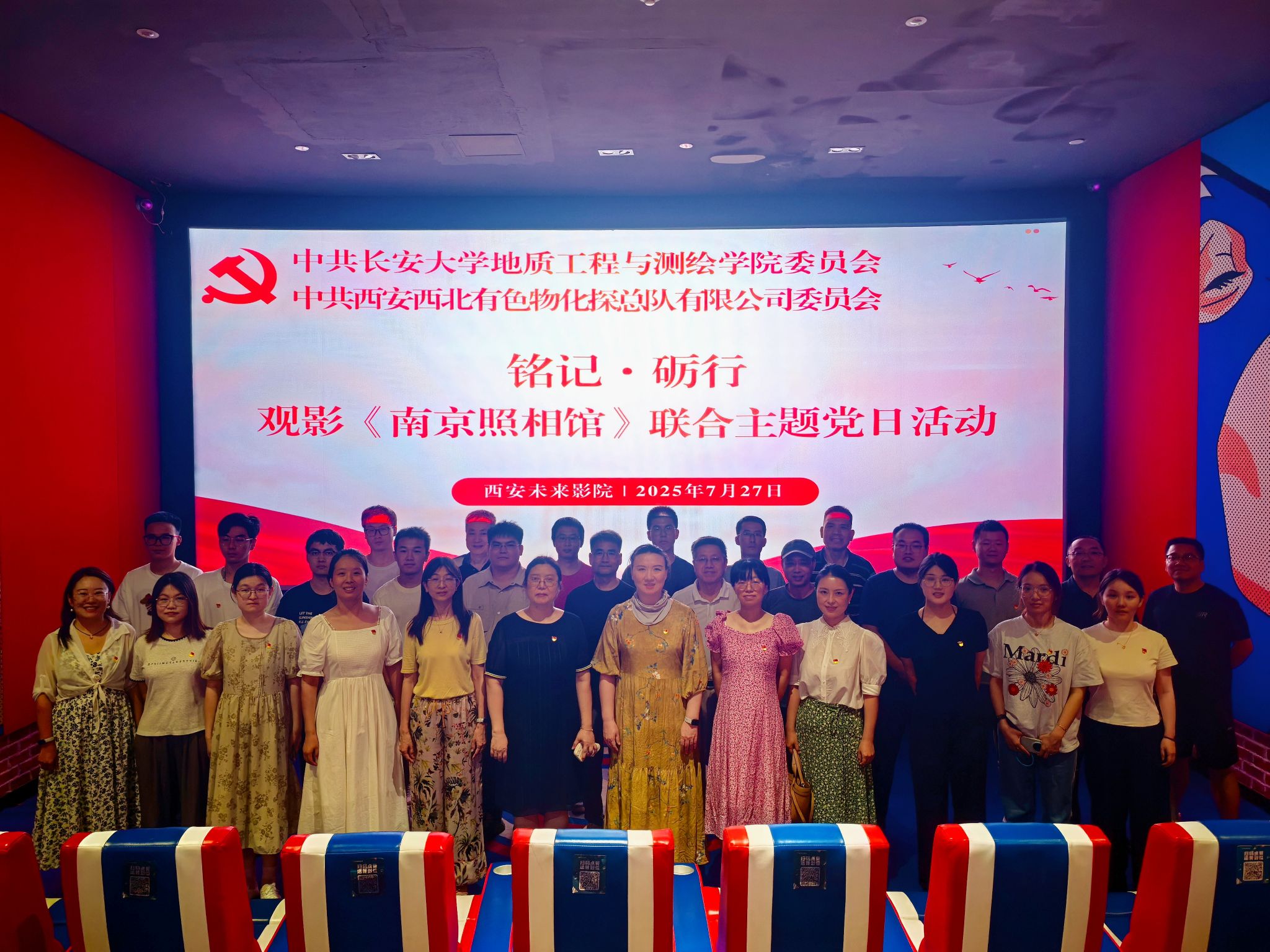 在纪念中国人民抗日战争暨世界反法西斯战争胜利80周年的重要历史时刻,为深切缅怀革命先烈,传承红色基因,凝聚奋进力量,7月27日,开云kaiyun官网地质工程与测绘学院党委与西北有色物化探总队有限公司党委联合开展“铭记·砺行”主题党日活动。开云kaiyun官网地测学院党委副书记潘迎、西北有色物化探总队有限公司党委副书记、工会主席曹捷及双方党委60余名党员代表共同观看了重大历史题材影片《南京照相馆》。