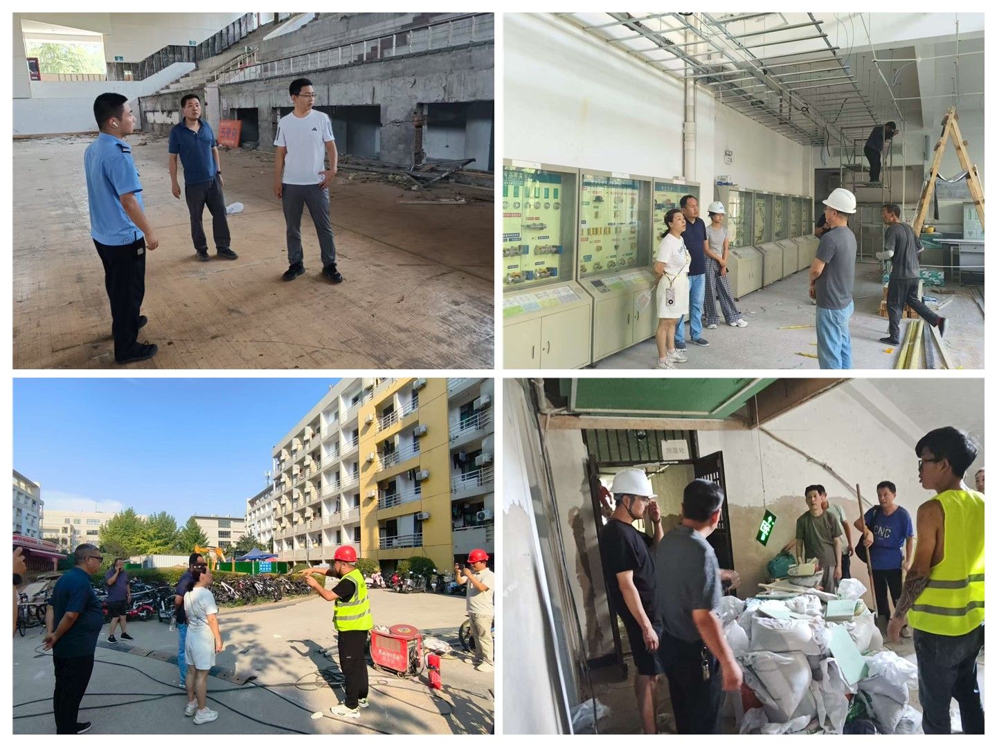 检查组深入校内各个施工区域,实地核查消防器材是否完好有效、特种作业人员是否持证上岗、动火作业是否经过审批、应急通道是否保持畅通等情况。同时,提醒施工方要高度重视施工现场基本安全要求,如规范佩戴安全帽、合理堆放材料、确保用电安全以及加强高空作业防护等,并要求施工人员严格遵守操作规程,杜绝侥幸心理,确保施工过程安全可靠。