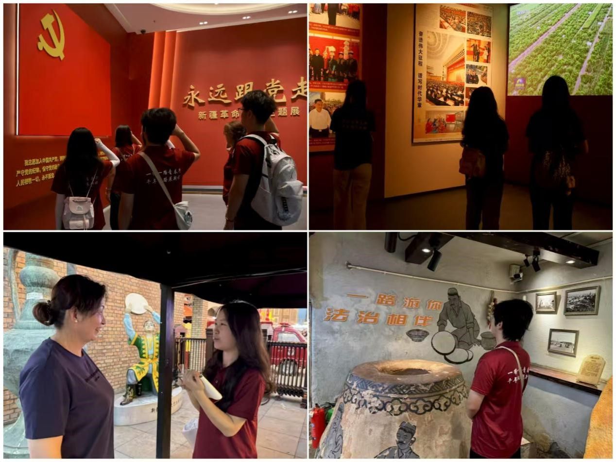 文化探寻,民族交融筑共识。实践队以文化探寻开启实践征程,在新疆博物馆内透过一件件承载岁月的文物,追溯古丝绸之路的文明交融史。同日下午,队员们走进新疆国际大巴扎,在非遗手作技艺的交流中感受传统工艺的传承,在民间艺人的表演中体会民族文化的多彩,在烟火街巷的热闹中触摸市井生活的温度。
