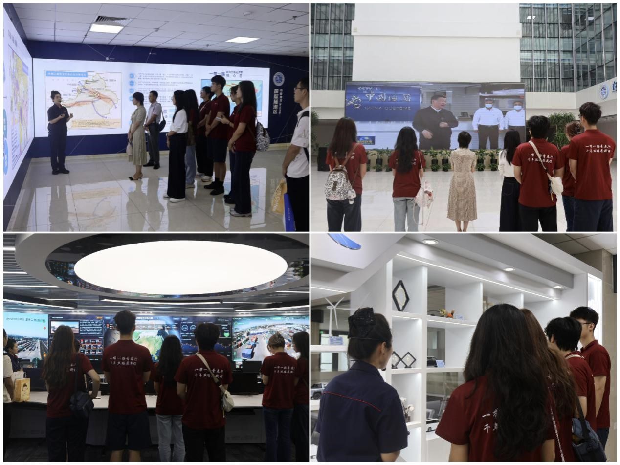 重走路线,开放实践显活力。实践队前往乌鲁木齐国际陆港区,沿着习近平总书记的足迹,在讲解员的带领下亲身感受新疆从相对封闭的内陆变为对外开放的前沿的历史跨越。实践队员站在习近平总书记曾经视察的点位上,聆听总书记对国际陆港区发展建设的殷殷嘱托,进一步坚定了服务交通强国丝路新篇章的决心。