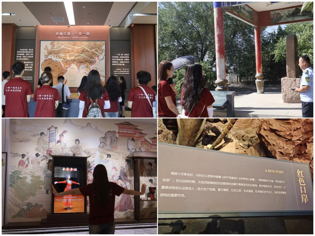 凝聚担当,口岸变迁谱新篇。实践最后一站抵达霍尔果斯口岸,国门文化展馆的悠远驼铃声唤起古丝路记忆,张骞“凿空之路”的文明交融史与“五位一体”现代化口岸的现状交相辉映,中哈国际边境合作中心绽放着“境内关外”的贸易活力。这座连接中哈的千年枢纽,正是“一带一路”建设的生动实践。