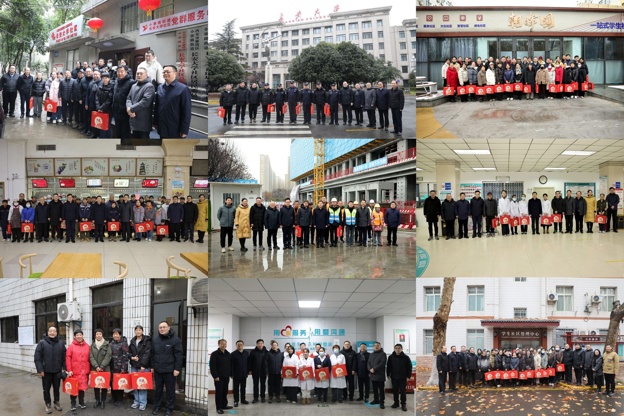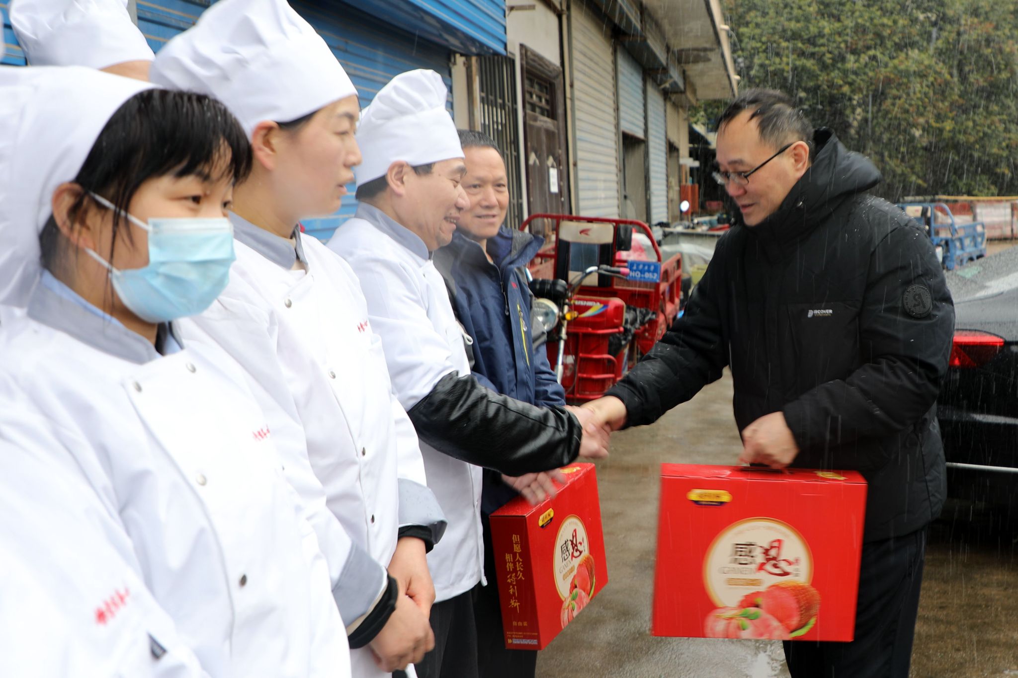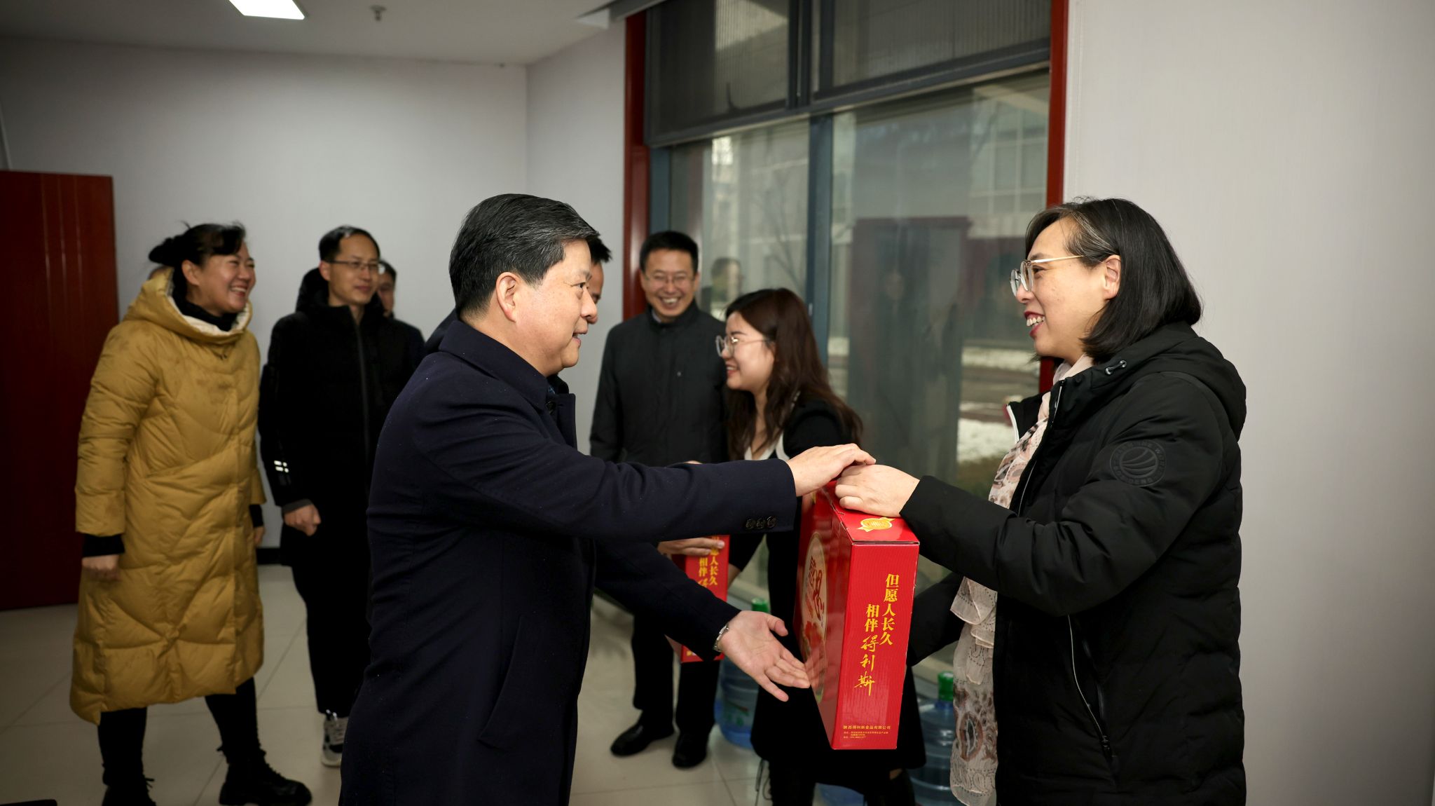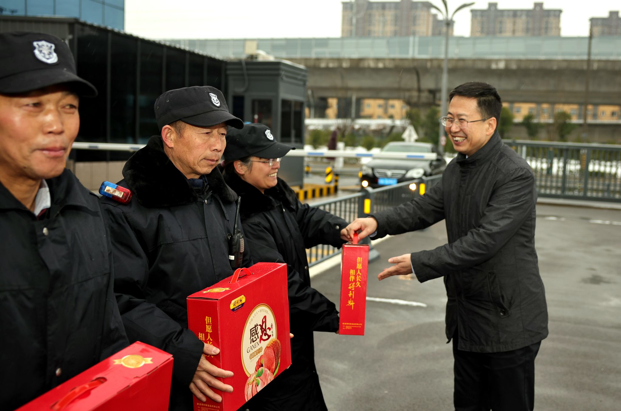 1月25日,在农历春节即将到来之际,踏着新春的第一场雪,校党委副书记徐引正、黎开谊,副校长王建伟,校党委常委、组织部长李文雄,校长助理杜强分别带队,看望并慰问了在寒假及春节期间依然坚守在工作岗位的一线教职员工。