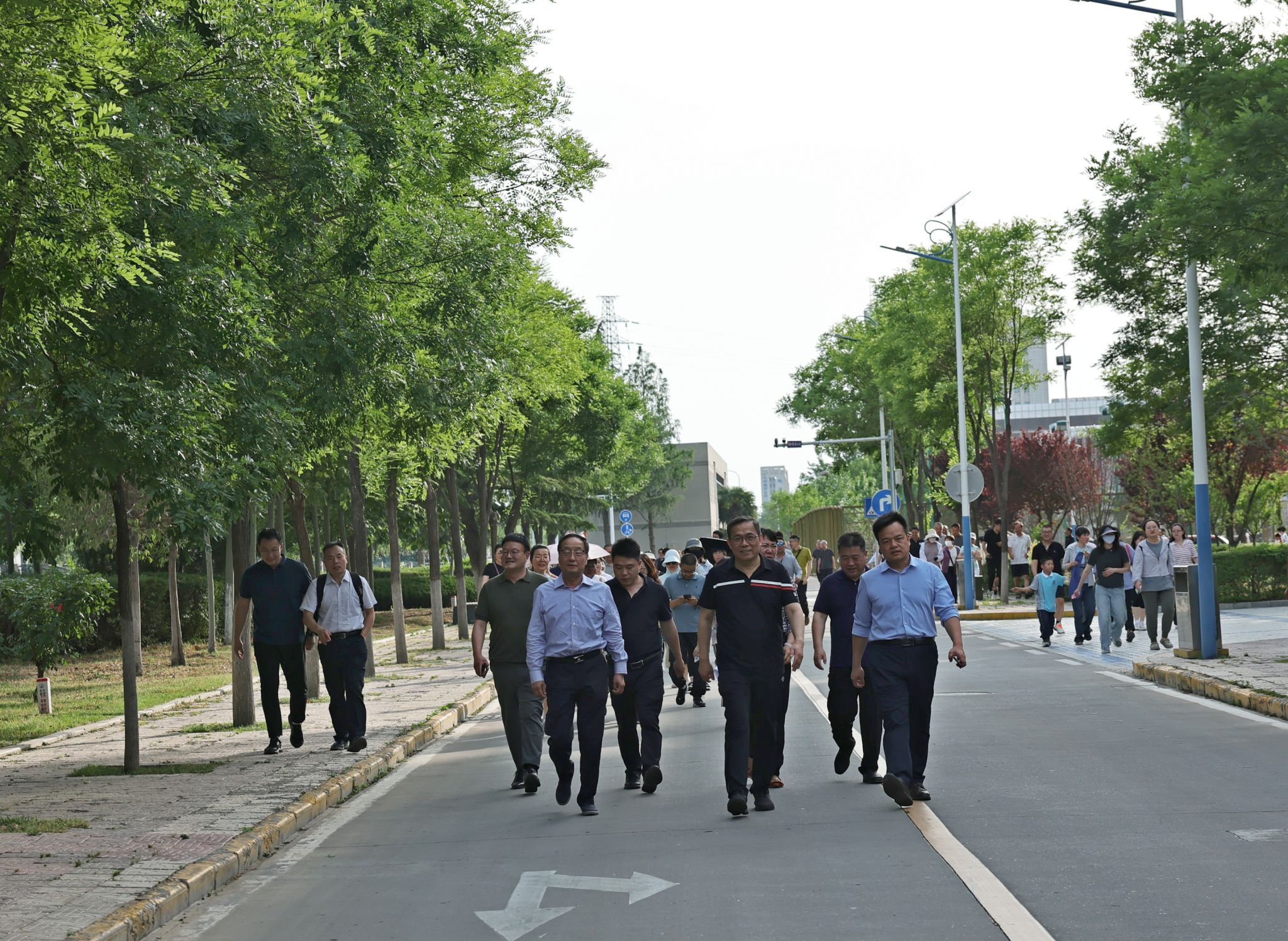 为迎接学校第五次党代会的胜利召开,营造团结奋进、健康向上的校园氛围,5月13日下午,校工会在南北校区同时举办“喜迎党代会,阔步向未来”教职工健步走活动。来自全校两千余名教职工共同参与,以昂扬向上的精神风貌,用铿锵步伐丈量教育初心,以实际行动凝聚发展共识,为即将召开的党代会注入蓬勃生机与活力。校长沙爱民、校党委副书记徐引正、副校长杜强参与活动。