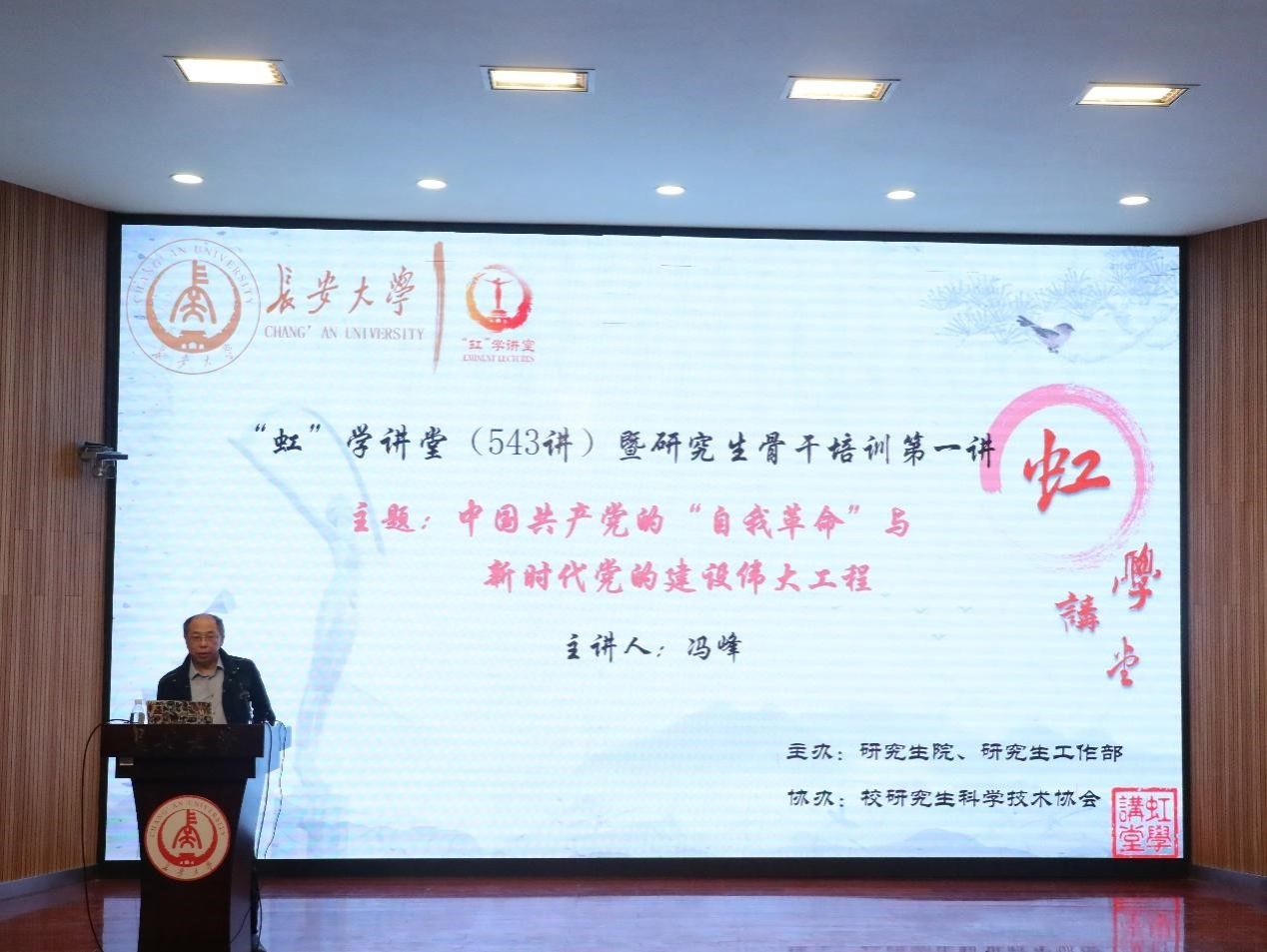 4月11日下午,由研究生院、研究生工作部主办,校研究生科学技术协会协办的“虹”学讲堂第543讲暨研究生骨干培训第一讲以线上线下相结合的形式举办。开云kaiyun官网冯峰教授作了题为“中国共产党的‘自我革命’与新时代党的建设伟大工程”的报告,相关学院共280余名师生参加讲座。