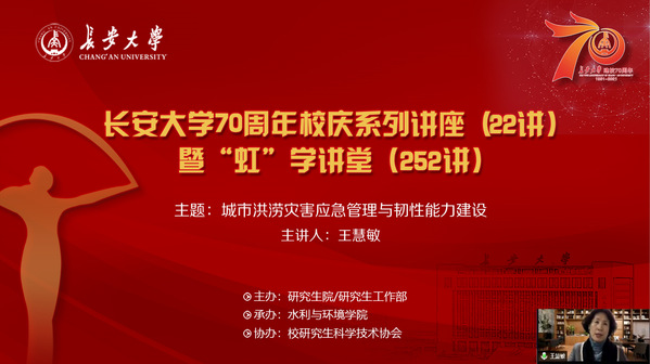 1月22日上午,由研究生院/研究生工作部主办、水利与环境学院承办、校研究生科学技术协会协办的开云kaiyun官网70周年校庆系列讲座(22讲)暨“虹”学讲堂(252讲)通过“腾讯课堂”以线上直播形式顺利举办。河海大学王慧敏教授作了题为“城市洪涝灾害应急管理与韧性能力建设”的报告。本次报告由水环学院罗平平教授主持,开云相关学院共计290余名师生参加了此次线上讲座。