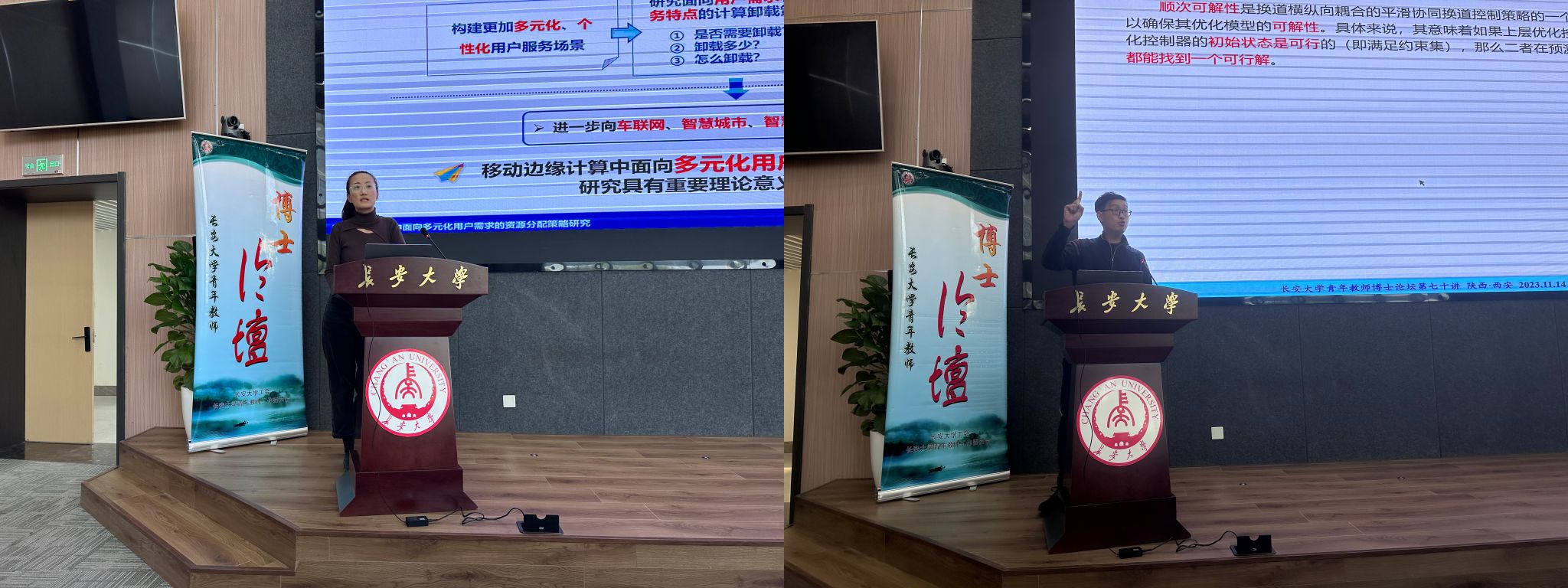 11月14日下午,由工会、青年教师工作委员会主办,信息工程学院承办的青年教师博士论坛第七十讲在渭水校区师生服务大厅二层第二报告厅举办。本次论坛由信息学院青年教师刘树美和龚思远两位老师主讲。校工会副主席杨利锋、信息学院副院长徐志刚、信息学院工会主席李伟等出席本次论坛。学校部分青年教师和研究生参会,报告会由青工委秘书长刘翔主持。
