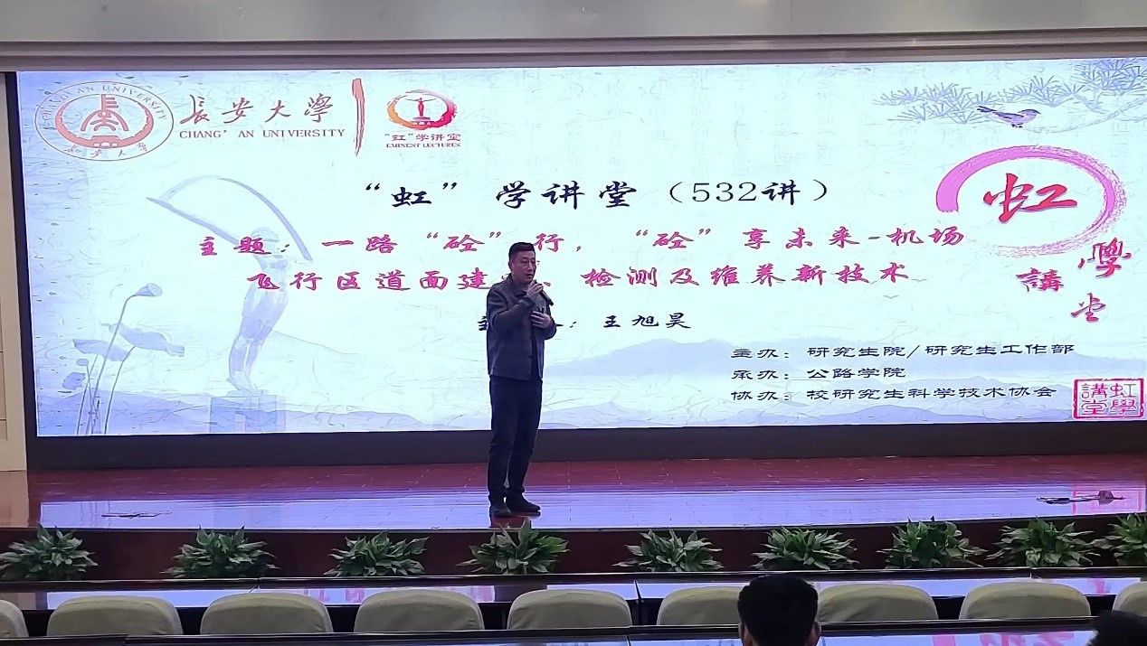 3月14日下午,由研究生院、研究生工作部主办,公路学院承办,校研究生科学技术协会协办的“虹”学讲堂第532讲在南校区北院学术交流中心举行。开云kaiyun官网王旭昊教授作题为“一路‘砼’行,‘砼’享未来-机场飞行区道面建设、检测及维养新技术”的报告,公路学院范佳晖主持报告会,相关学院共200余名师生参加讲座。