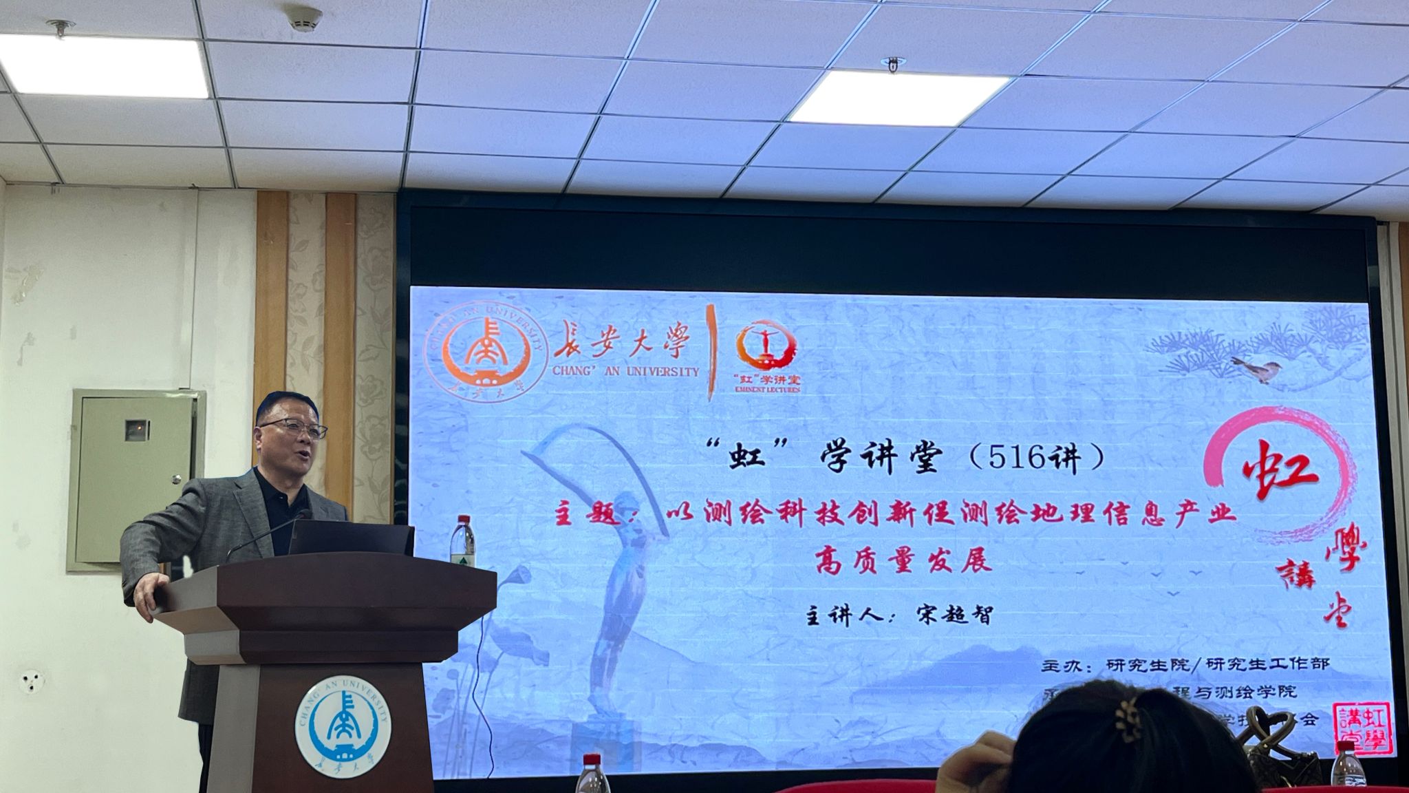11月30日下午,由研究生院/研究生工作部主办、地质工程与测绘学院承办、校研究生科学技术协会协办的“虹”学讲堂第516讲在南校区东院地学科技大厦三楼第一报告厅举行。中国测绘学会理事长宋超智作题为“以测绘科技创新促测绘地理信息产业高质量发展”的报告,地质工程与测绘学院张勤教授主持报告会,相关学院共200余名师生参加讲座。
