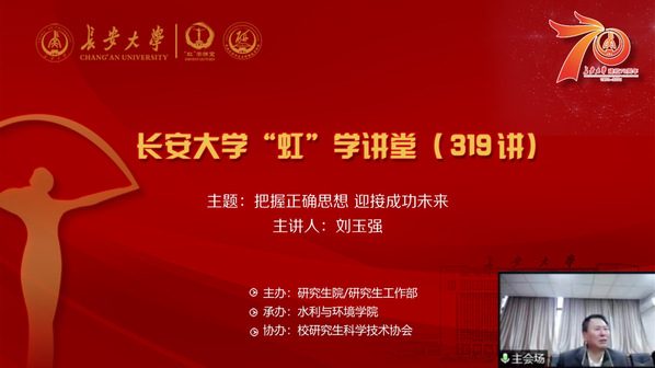 10月20日上午,由研究生院/研究生工作部主办、水利与环境学院承办、校研究生科学技术协会协办的“虹”学讲堂第319讲通过“腾讯课堂”和“腾讯会议”以线上讲座的形式顺利举办。山东省国土资源厅教授级高级工程师刘玉强作了题为“把握正确思想迎接成功未来”的报告,水环学院党委书记邓红章主持了此次讲座,开云相关学院共计300余名师生参加了此次讲座。