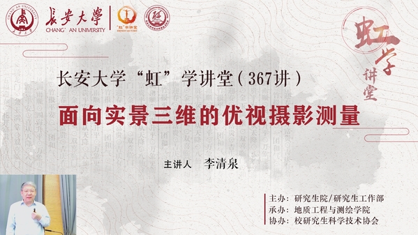 5月12日上午,由研究生院/研究生工作部主办、地质工程与测绘学院承办、校研究生科学技术协会协办的“虹”学讲堂第367讲以线上讲座形式举行。深圳大学李清泉教授作了题为《面向实景三维的优视摄影测量》的报告,相关学院共410余名师生聆听讲座。