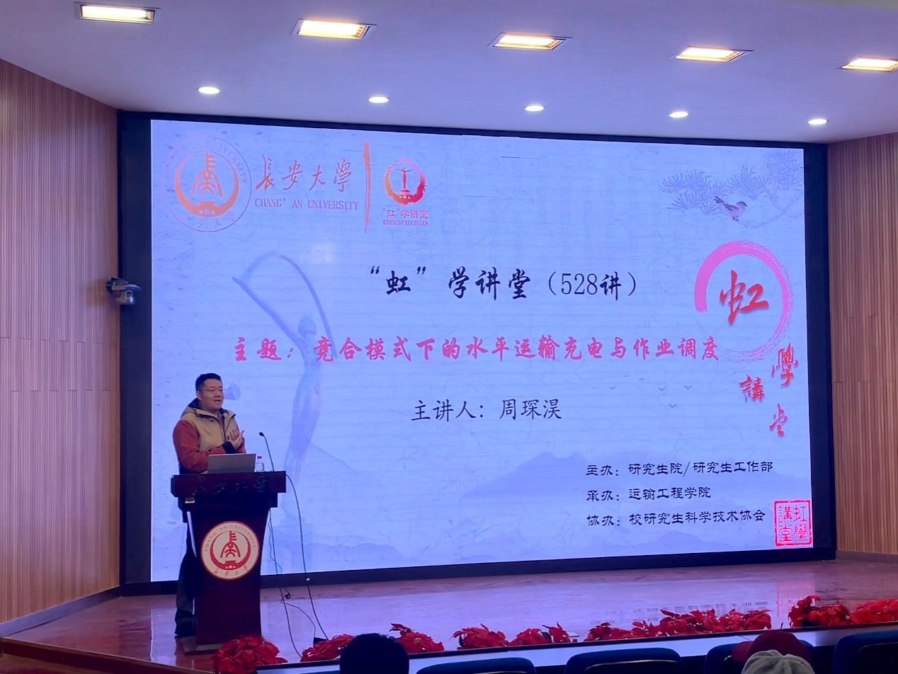 12月8日上午,由研究生院/研究生工作部主办、运输工程学院承办、校研究生科学技术协会协办的“虹”学讲堂第528讲在南校区东院伯声报告厅举行。西北工业大学周琛淏教授作题为“竞合模式下的水平运输充电与作业调度”的报告,相关学院共200余名师生参加讲座。