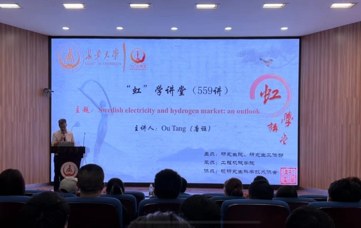 5月10日上午,由研究生院、研究生工作部主办,工程机械学院承办,校研究生科学技术协会协办的“虹”学讲堂第559讲在南校区东院伯声报告厅举办。瑞典林雪平大学唐讴教授作题为“Swedish electricity and hydrogen market: an outlook”的报告,工程机械学院吕景祥副教授主持报告会,相关学院共190余名师生参加讲座。