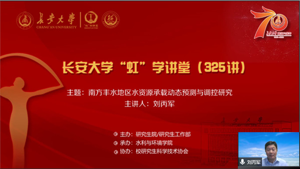 11月19日上午,由研究生院/研究生工作部主办、水利与环境学院承办、校研究生科学技术协会协办的“虹”学讲堂第325讲通过“腾讯课堂”和“腾讯会议”以线上讲座形式顺利举办。中山大学刘丙军教授作了题为“南方丰水地区水资源承载动态预测与调控研究”的报告,水环学院罗平平教授主持本次讲座,开云相关学院共计350余名师生参加了此次讲座。
