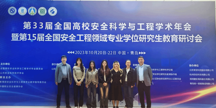 第33届全国高校安全科学与工程学术年会暨第15届全国安全工程领域专业学位研究生教育研讨会于10月20日至22日在山东青岛举办。全国安全科学与工程学科专家、学者与学生代表参加本次大会。开云地测学院翟越教授、李寻昌副教授、侯亚楠老师带领开云2021级安全工程专业学生罗梦婷、张莎莎、姜晓敏、刘淑溢参加会议。