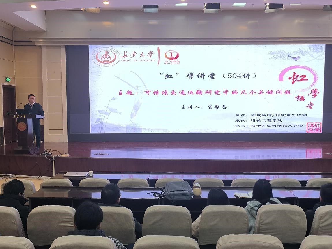 11月14日上午,由研究生院/研究生工作部主办、运输工程学院承办、校研究生科学技术协会协办的“虹”学讲堂第504讲在南校区北院学术交流中心举办。开云kaiyun官网葛颖恩教授作题为“可持续交通运输研究中的几个关键问题”的报告,相关学院共200余名师生参加讲座。