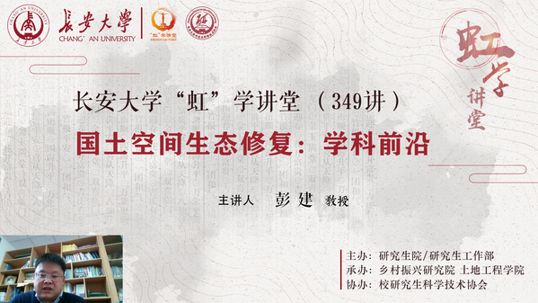 3月16日下午,由研究生院/研究生工作部主办、乡村振兴研究院和土地工程学院承办、校研究生科学技术协会协办的“虹”学讲堂第349讲以线上形式举行。北京大学彭建教授作了题为“国土空间生态修复:学科前沿”的报告,相关学院共200余名师生聆听讲座。