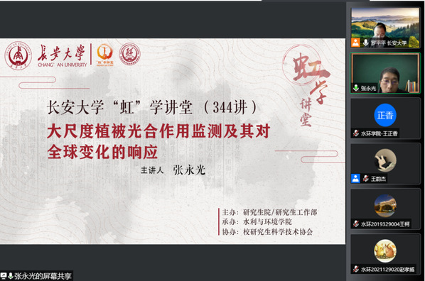 1月20日上午,由研究生院/研究生工作部主办、水利与环境学院承办、校研究生科学技术协会协办的“虹”学讲堂第344讲以线上讲座形式顺利举办。南京大学张永光教授作了题为“大尺度植被光合作用监测及其对全球变化的响应”的报告,水利与环境学院罗平平教授主持了此次讲座,相关学院共220余名师生参加了讲座。