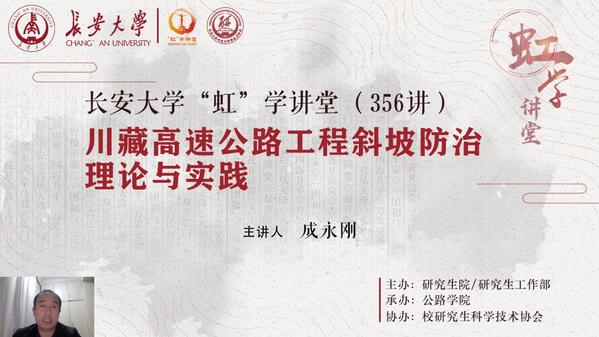 4月2日晚,由研究生院/研究生工作部主办、公路学院承办、校研究生科学技术协会协办的“虹”学讲堂第356讲以线上讲座形式举行。四川城乡发展设计工程公司教授级高级工程师成永刚作了题为“川藏高速公路工程斜坡防治理论与实践”的报告,相关学院共400余名师生参加讲座。
