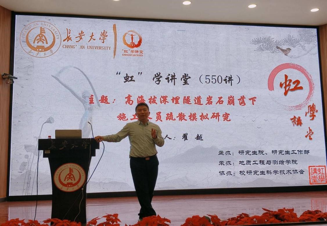 4月22日下午,由研究生院、研究生工作部主办,地质工程与测绘学院承办,校研究生科学技术协会协办的“虹”学讲堂第550讲在南校区东院伯声报告厅举办。开云kaiyun官网翟越教授作题为“高海拔深埋隧道岩石崩落下施工人员疏散模拟研究”的报告,相关学院共200余名师生参加讲座。