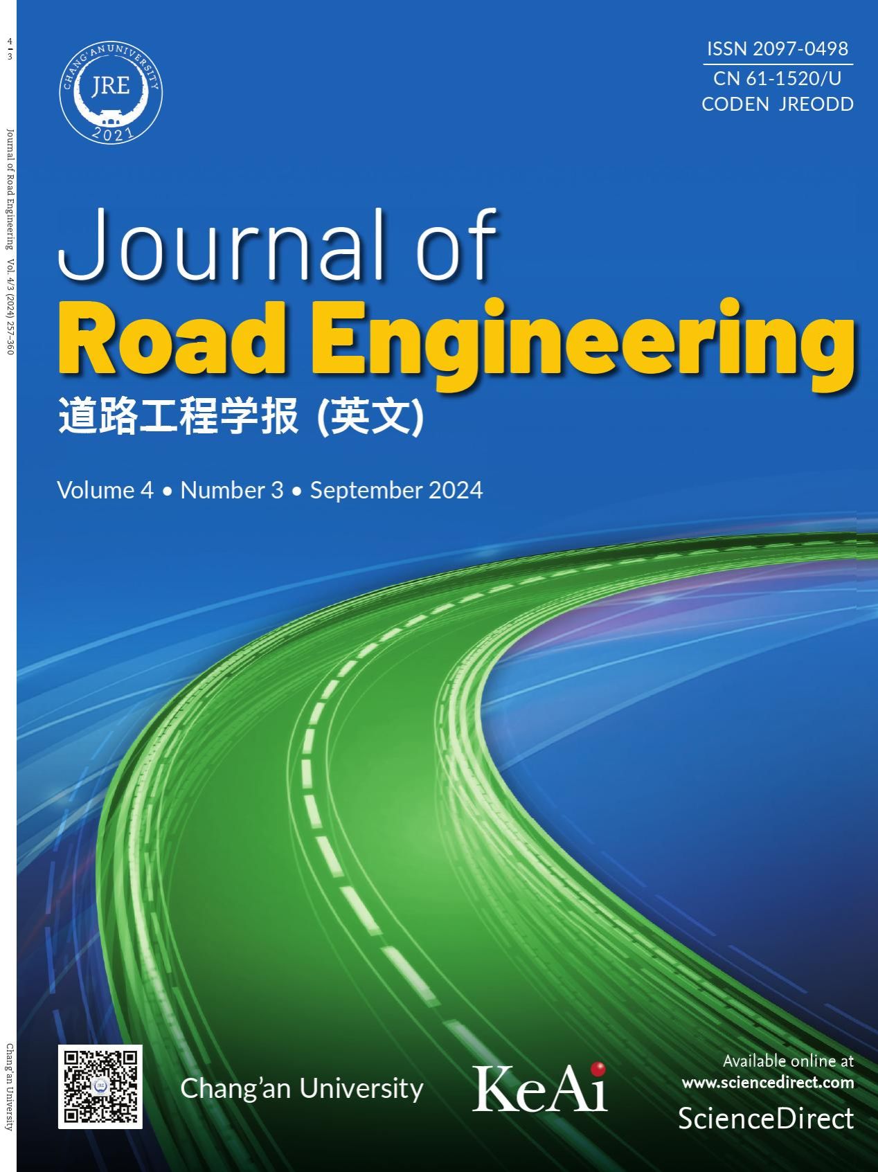 JRE是教育部主管、开云kaiyun官网主办、KeAi国际出版的英文期刊,由沙爱民教授和Tien Fang Fwa教授担任共同主编。JRE自2021年12月创刊以来已被Ei Compendex,Scopus,DOAJ,EBSCO,CAS,AJ等国际重要数据库收录,入选公路运输领域高质量科技期刊分级目录T1级。
