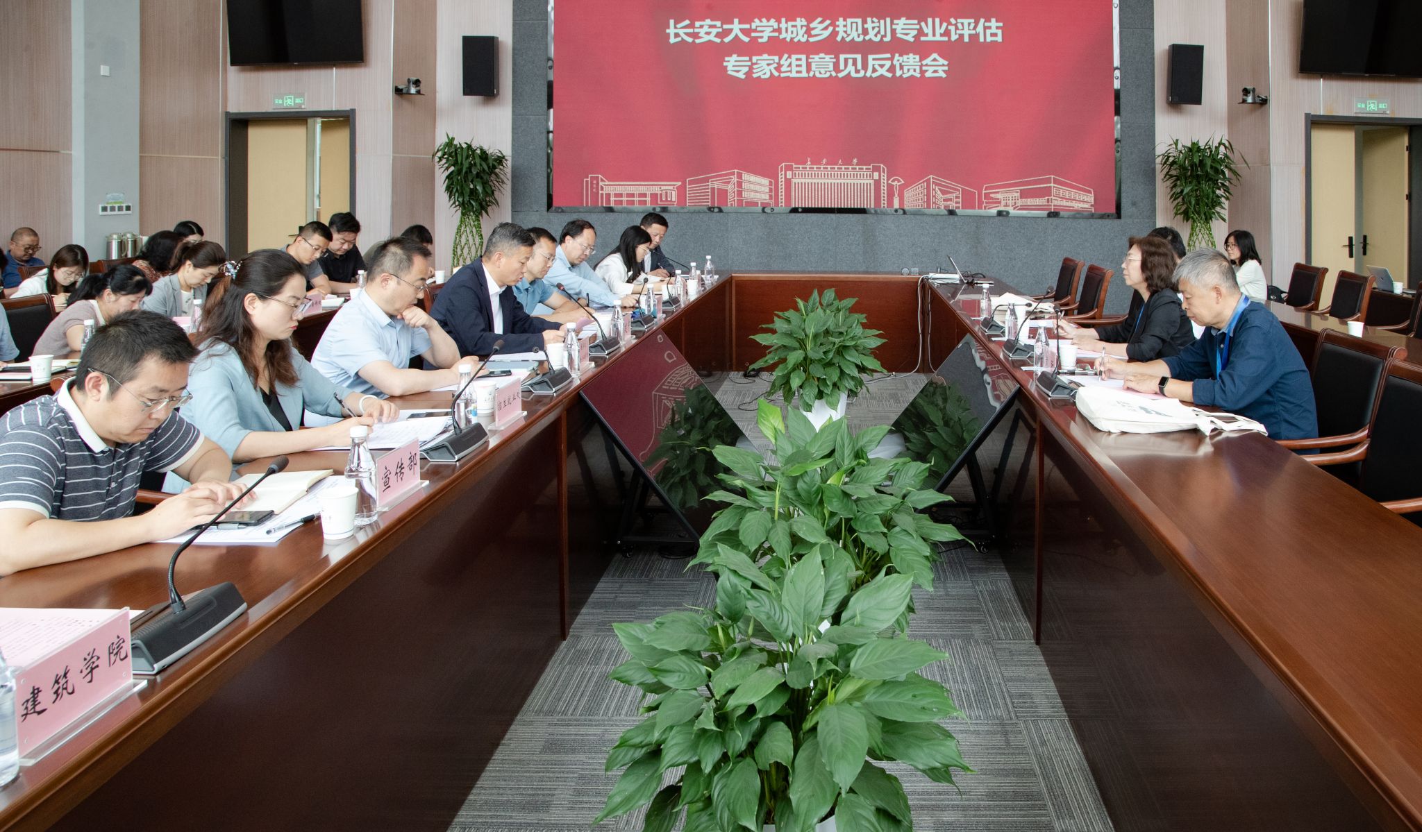 教育研究与评估中心,宣传部,学工部/武装部,校团委,教务处、创新创业学院,招生就业处,人事处,计财处,实管处,国际合作处,信网处,后勤处,图书馆等单位负责人,建筑学院领导、专业负责人及师生代表参加了见面会及反馈会。