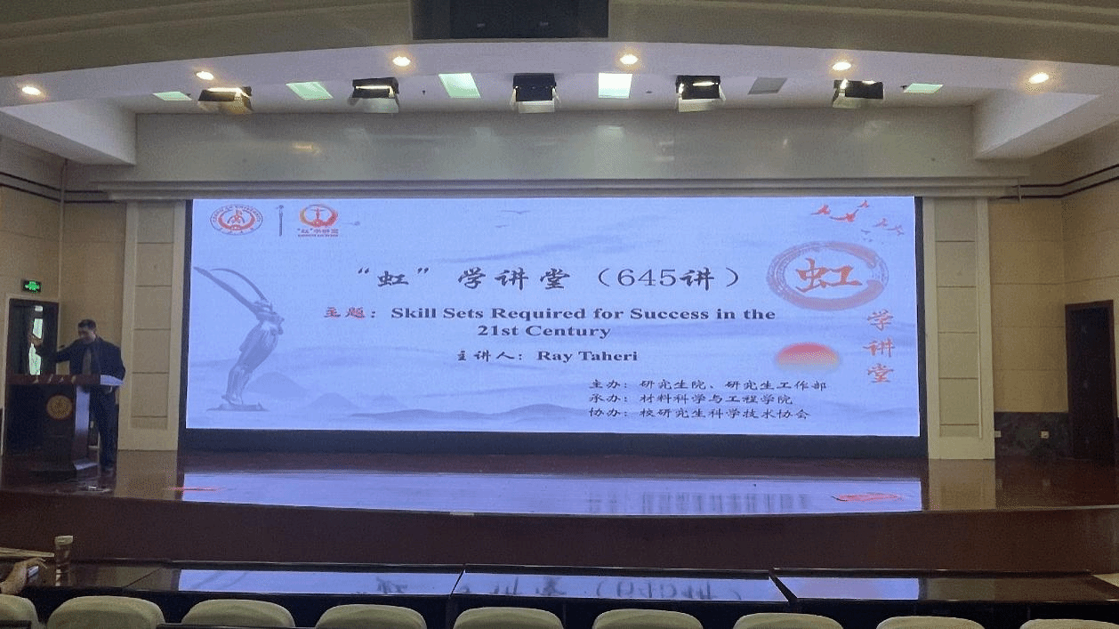 6月6日下午,由研究生院、研究生工作部主办,材料科学与工程学院承办,校研究生科学技术协会协办的“虹”学讲堂第645讲在南校区北院学术交流中心报告厅举办。英属哥伦比亚大学Ray Taheri教授作题为“21世纪必备技能体系”的报告,材料科学与工程学院滑维杰主持,相关学院共250余名师生参加讲座。