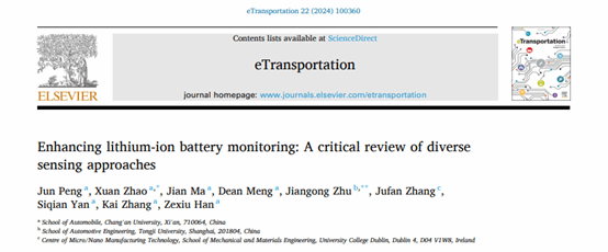 论文信息:Jun Peng, Xuan, Zhao, Jian Ma, et al. Enhancing lithium-ion battery monitoring: A critical review of diverse sensing approaches, eTransportation 2024:100360.
